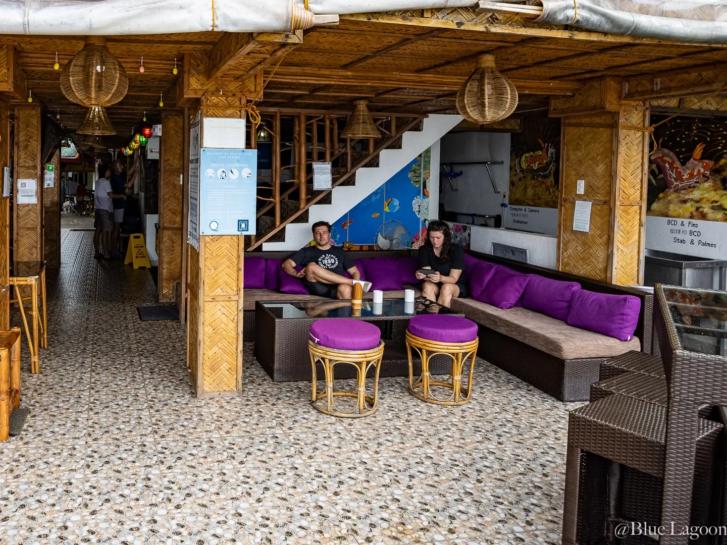 Détendez vous dans l’un de nos trois lounges.Le premie face à la mer, les deuxième dans le jardin tropical et le dernier au bord de la piscine. Trois lieux de repos, d’échange, de convivialité où pourrez partager vos expériences avec d’autres plongeurs, et boire quelques excellents cocktails!