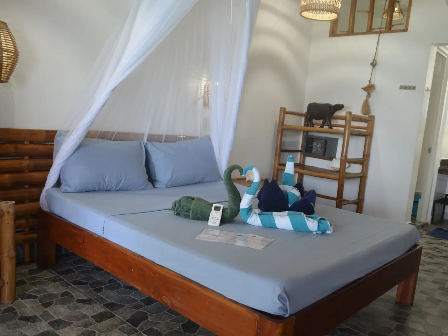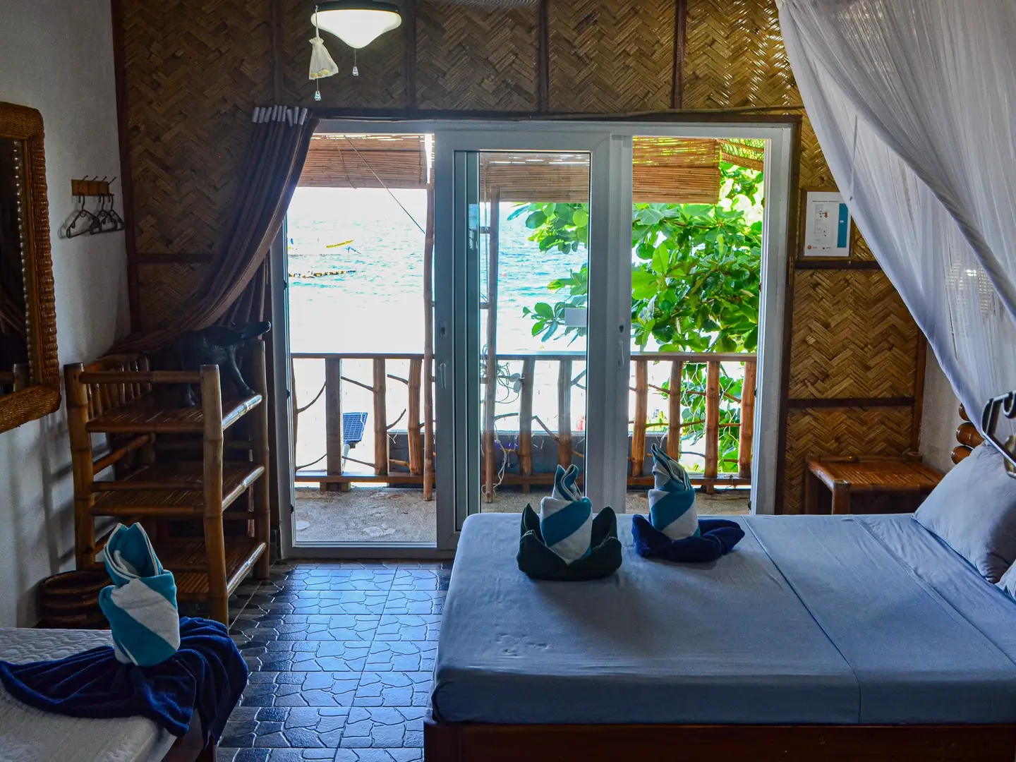 - 3 chambres Mabuhay – de l’autre côté du jardin – 2 chambre avec 1 fgrand lit et 1 chambre avec 1 lit double et 1 lit simple